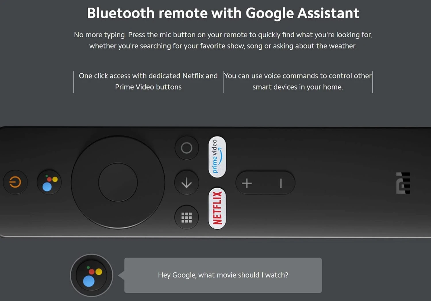 • Bluetooth remote: No more typing. Press the mic button on your remote to quickly find what you're looking for, whether you're searching for your favorite show, song or asking about the weather.